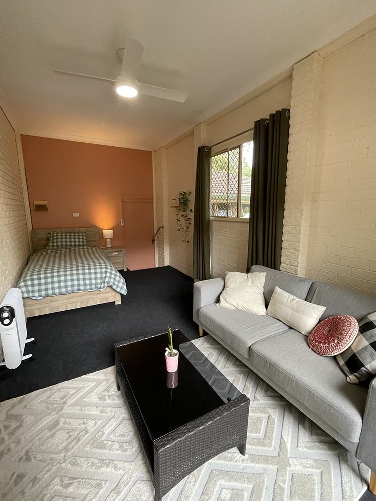 A newly renovated garage has been converted into a comfortable and private studio-style space. It has its own entrance and comes fully furnished, making it move-in ready.
