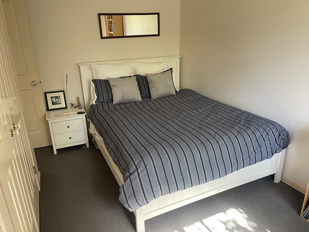 Your bedroom currently has a new queen bed, mattress and bookcase, as well as a very large built-in wardrobe.