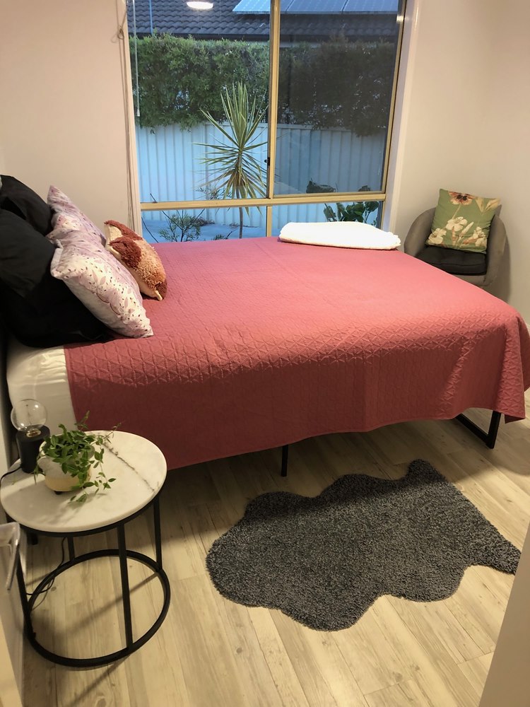 Nestled in a lush, tropical garden with a pool and plenty of room to relax this home is in a quiet family suburb less than 10 minutes' drive to the SCU, public transport is minutes away and the CBD is 10 minutes' walk away. The room is private, has direct access to the bathroom and is spacious and well furnished. It contains a queen bed; linen can be provided. There is a huge built in wardrobe as well as a chest of drawers, bedside table, lamp and ceiling fan. I am a manager at the Coffs Harbour Health Campus and work fulltime. My daughter lives in a small studio on the property and has access to the property too. I have a dog and two cats; all are very friendly. Plenty of off-street parking. The living areas of the house are large, and open plan. The kitchen is modern and fully equipped. Internet and water are included in the rent, electricity will be split 3 ways.