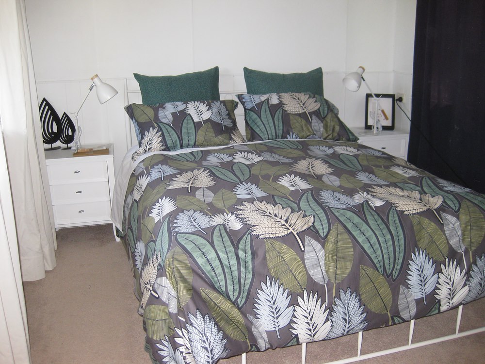 Not share house. 5 mins Coffs CBD. AVAILABLE 13 Jan. Separate bedroom. Q bed, Robe. Fridge, wash machine, oven/cooktop, microwave, cookware/utensils/crockery, air con, TV. Lounge, table chairs, firepit, outdoor table/chairs. Farming property 200 acres in private valley over the range. Public road access of 500M from end of bitumen to property boundary is not flat and is not sealed so suitable vehicle necessary. Fully furnished. Privately located .. Very quiet .. No near neighbours.