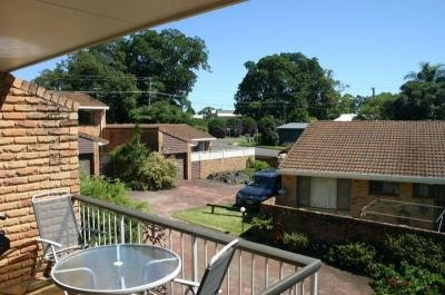 Sunny, north-facing balcony with tree views. Private rear courtyard with clothesline and garden.