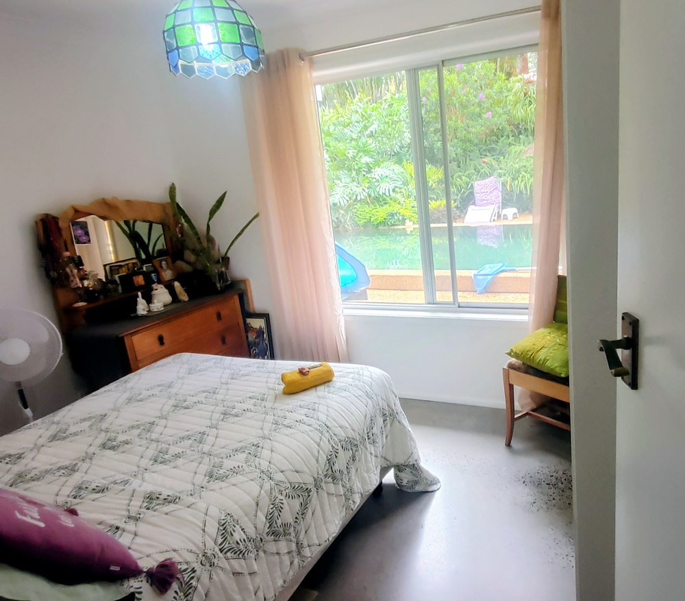 I am a mature female and own this lovely small home with water views to Fingal on big block with beautiful gardens a Bali Hut and pool